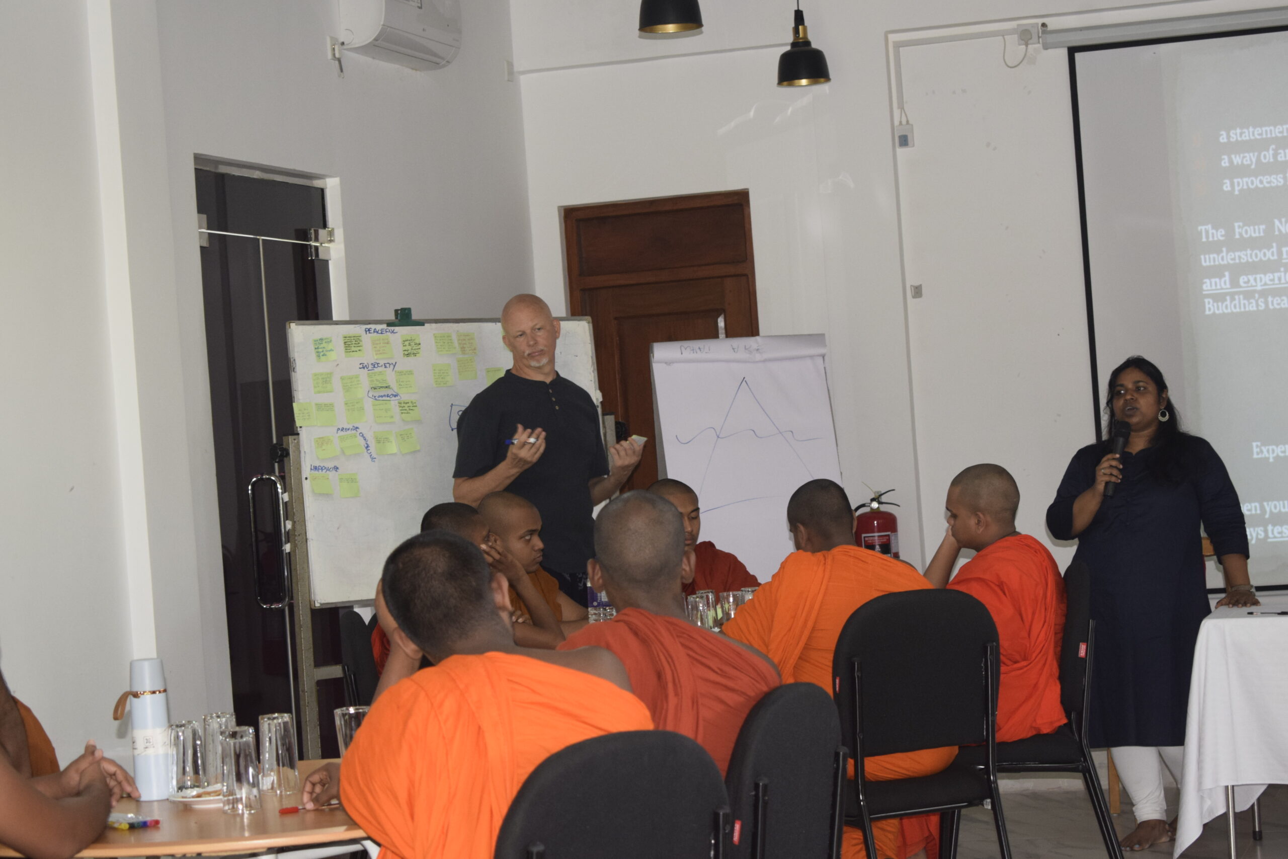 The training combined lectures, meditation, group reflections, and workshops. Key sessions included: