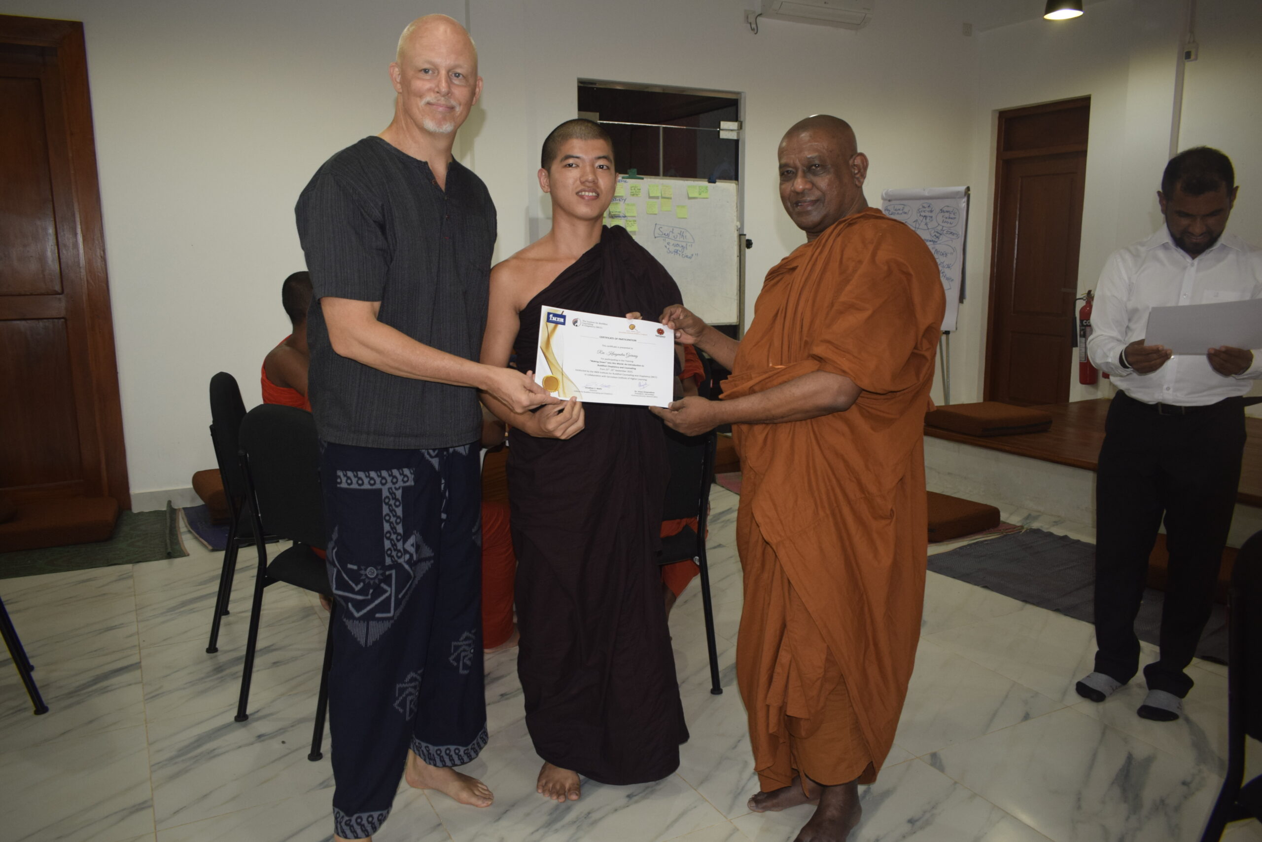 The program was organized by the INEB Institute for Buddhist Counseling and Chaplaincy (IBCC) in collaboration with the Lanka Jathika Sarvodaya Shramadana Sangamaya, with facilitation by SIHL. It was conducted by Mr. Jonathan S. Watts, Director of IBCC, and attended by 27 monks from around 20 districts, along with nuns representing the Sarvodaya National Bhikku Congress, coordinated by the Sarvodaya Shanthi Sena Sansadaya. while Rev. Kuppiawatte Bodananda Thero also took part as a participant throughout the program.